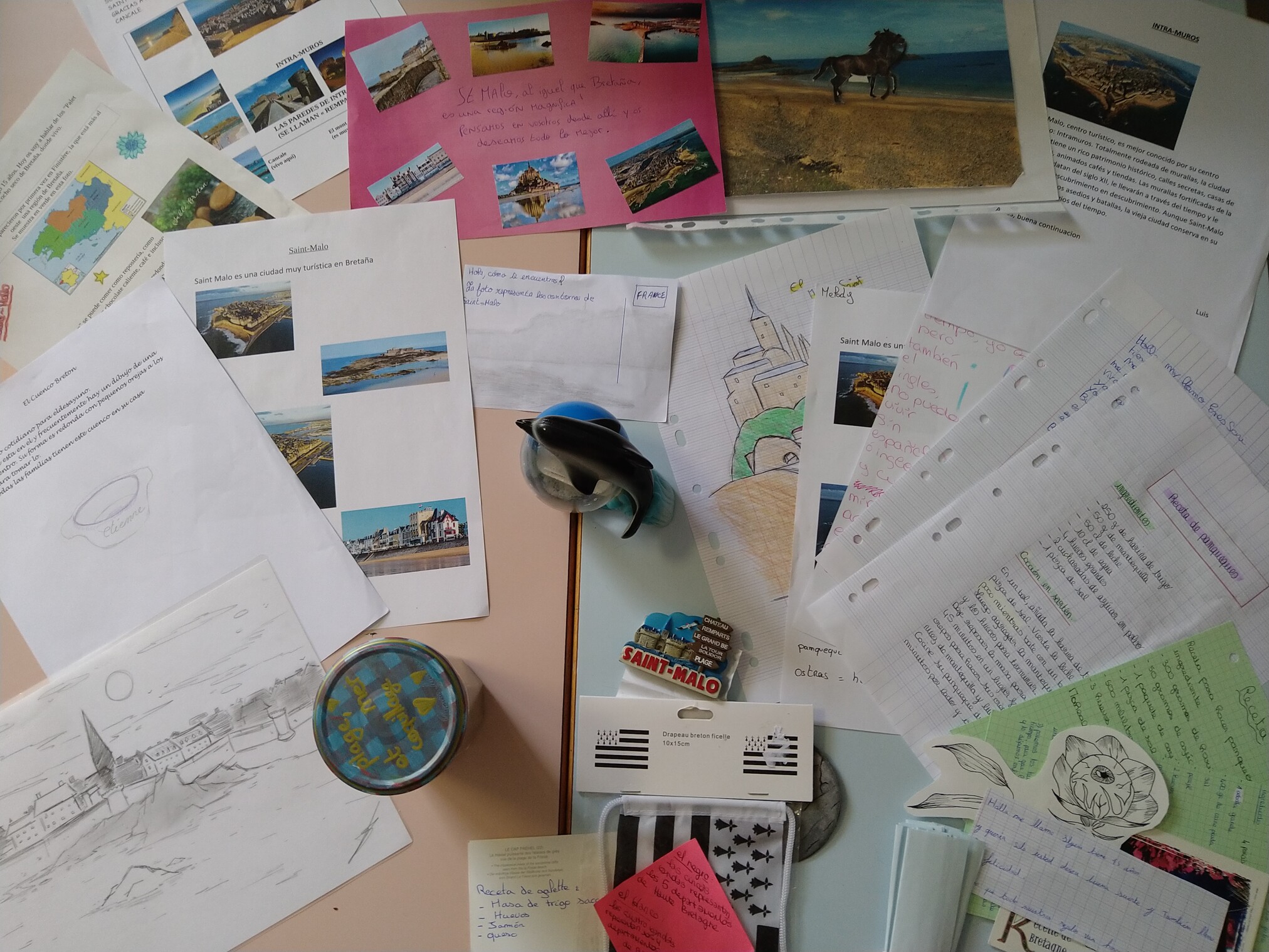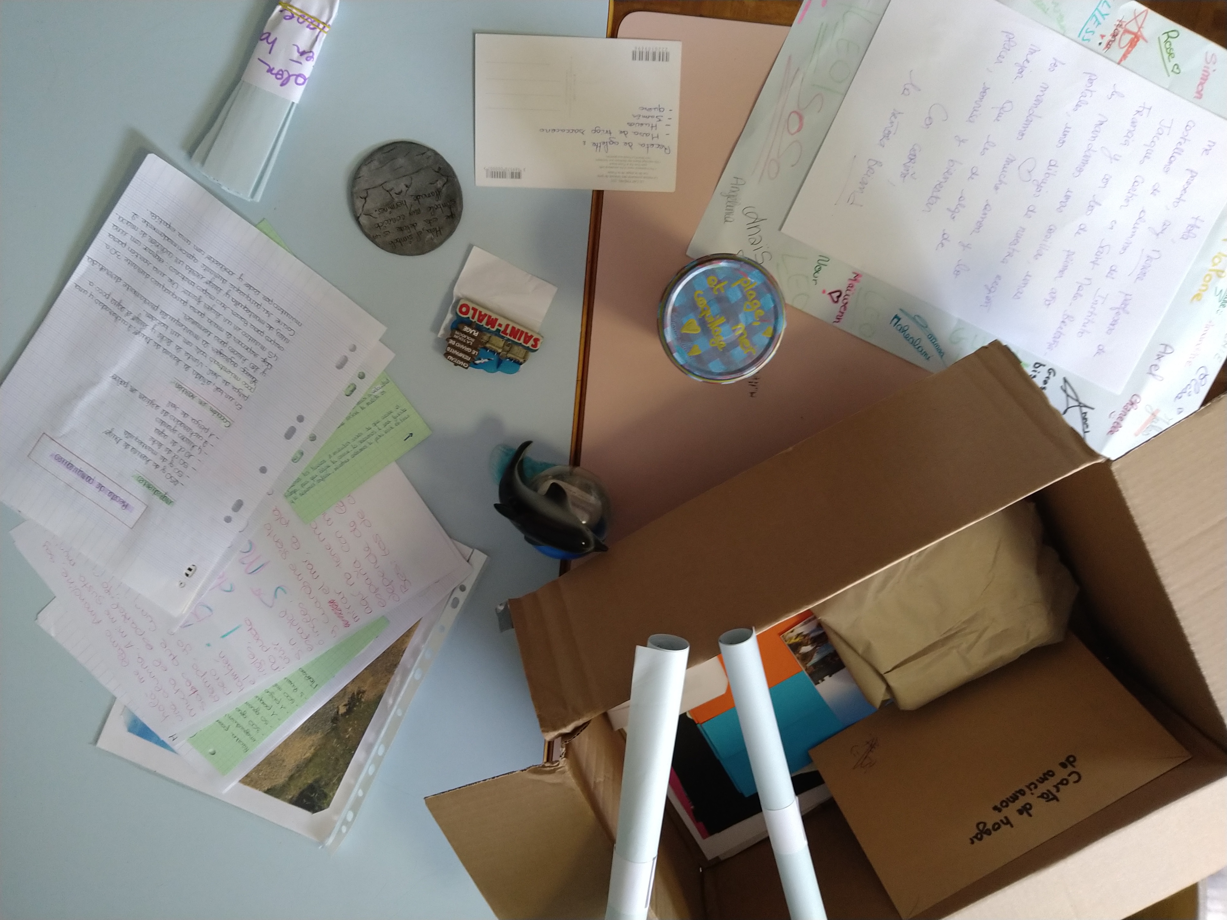 Pour créer un lien social et multigénérationnel, les élèves de 2A et 2F de Mme Briand ont envoyé un carton avec des objets bretons, des souvenirs, des dessins, des petits mots à une maison de retraite espagnole via l'association Adopta un Abuelo de Madrid. Cette association met en relation les jeunes et les personnes âgées, ici l'idée est l'émotion, raviver l'esprit et donner de l'intérêt aux élèves.